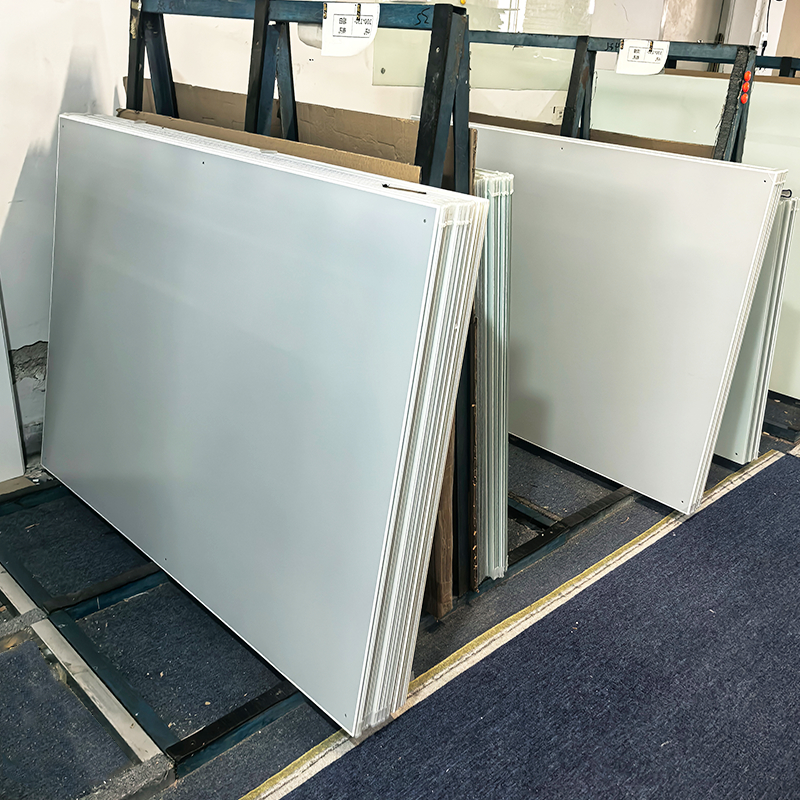 Bijna alle whiteboard glas die op de markt verkrijgbaar is, gebruikt gehard glas als basismateriaal. Dit type glas ondergaat een versterkingsproces van hoge-temperatuurverhitting (meestal tot 600-700℃) gevolgd door snelle afkoeling, waardoor een unieke interne spanningsstructuur ontstaat. In vergelijking met gewoon glas heeft gehard glas 2-3 keer hogere slagvastheid. Zelfs als het per ongeluk breekt, versplintert het in deeltjes zonder scherpe randen, waardoor veiligheidsrisico's aanzienlijk worden verminderd. Afhankelijk van de toepassingsscenario's varieert de dikte van het basisglas meestal van 8 mm tot 19 mm—10 mm-12 mm voor kantooromgevingen en 15 mm-19 mm voor grote tentoonstellingshallen of openbare ruimtes.